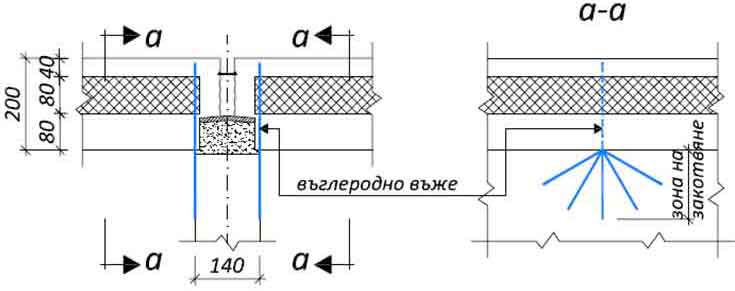 Допълнителна връзка на фасаден неносещ панел с носещ стенен панел, посредством въглеродно въже SikaWrap FX-50 C.