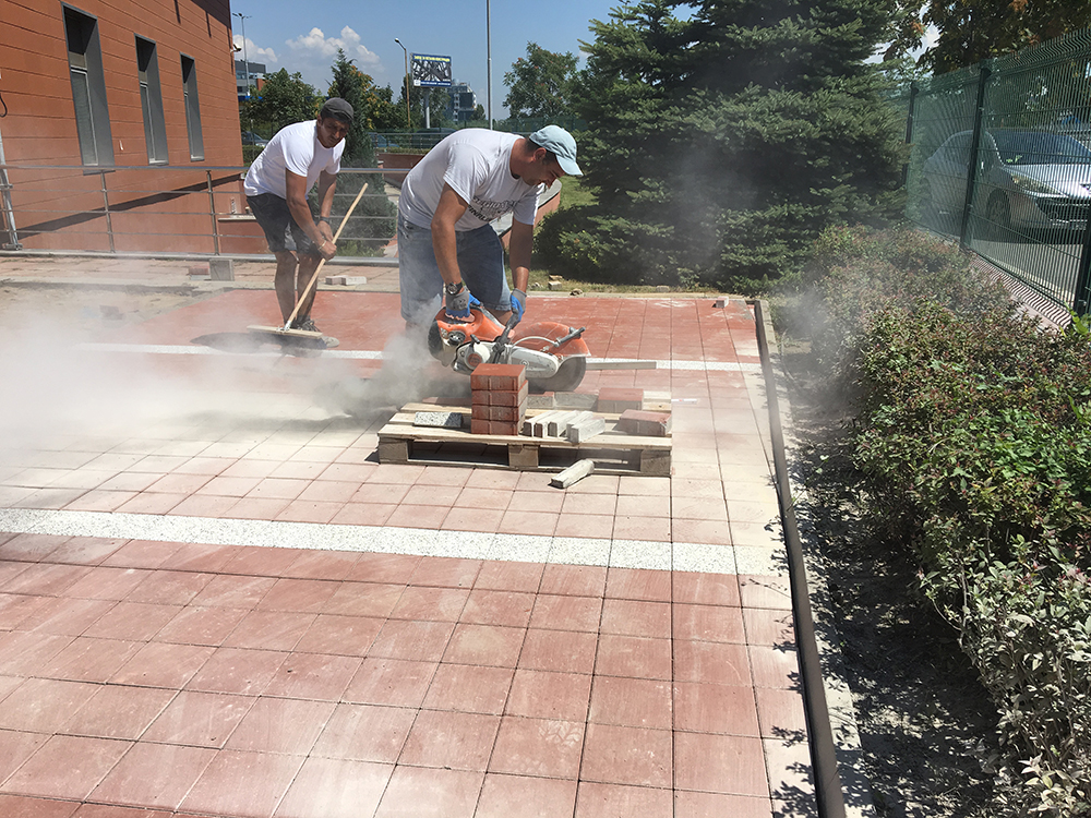 За конкретния обект – хотел в град София, трябваше да отговорим на следните въпроси: Как да изпълним плочника, по който се придвижват превозни средства към входа на хотела и площадката с парко-места край него? Кое е доброто решение за паважната настилка?