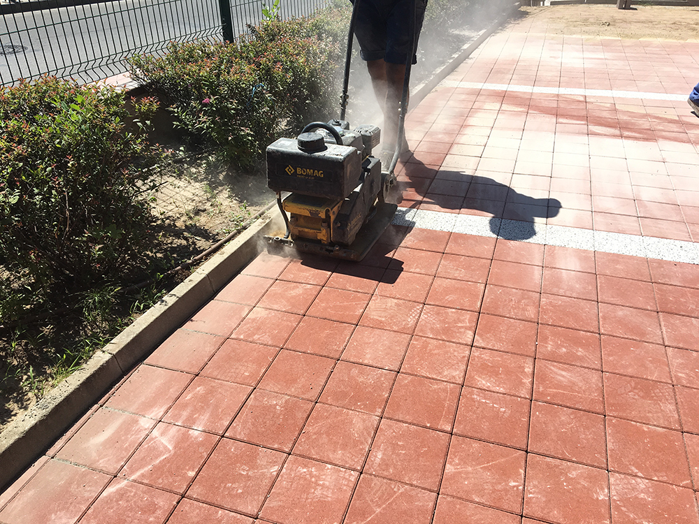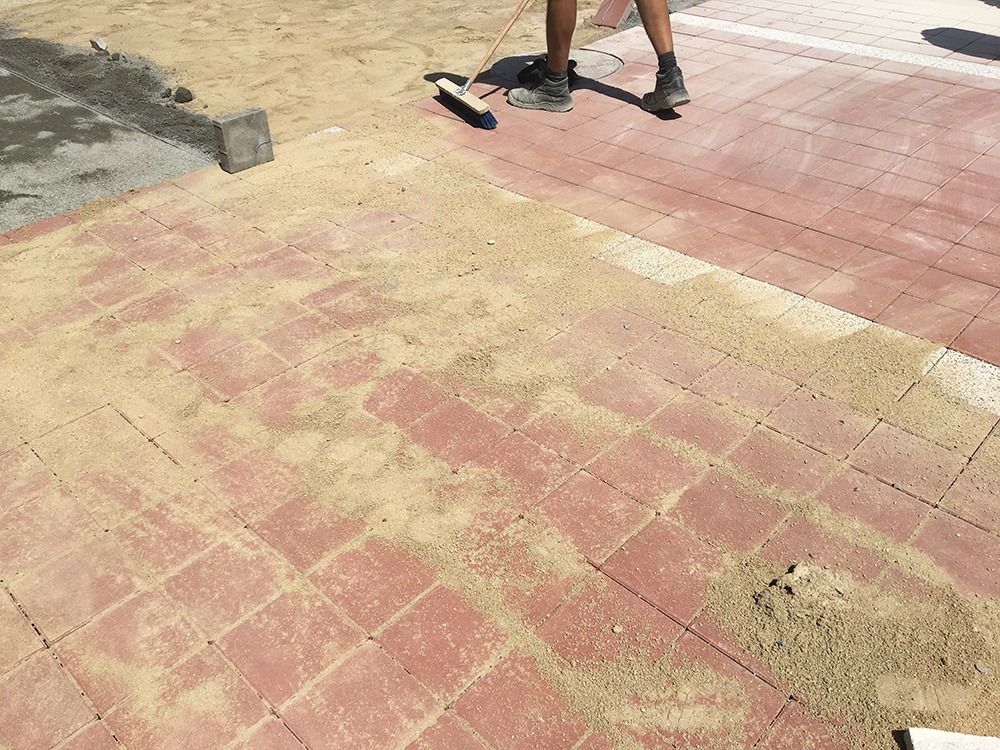 – След завършването на всеки отделен участък може да се пристъпи към фугиране на пространствата между паветата с пясък.