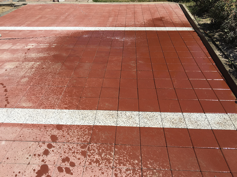 – След около 7 дни, когато подложката е набрала достатъчна якост и върху настилката може да се ходи, фугите се дозапълват с пясъка за фугиране. Повърхността отново се омокря внимателно с вода (под формата на ситен дъжд). След изсъхването на паветата, евентуални остатъци от пясъка на повърхността се измитат с четка.