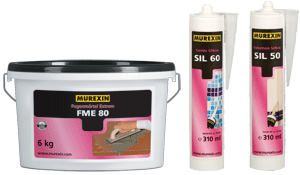 В комплект с фугиращите смеси Мурексин предлага „Санитарен силикон SIL 60” с подобрено качество, нов дизайн на опаковките и в същата цветова гама. Силиконите са отлични за запълване на подвижните и деформационните фуги на строителната площадка – между подовете и стените, по ъглите между стените, както и за деформационни фуги, които трябва да се оформят при по-големи площи на терасите, балконите и т.н. Устойчиви са на ултравиолетови лъчи, резистентни са към бактерии и гъбички и приложими при широк температурен диапазон: от –40°С до +180°С.