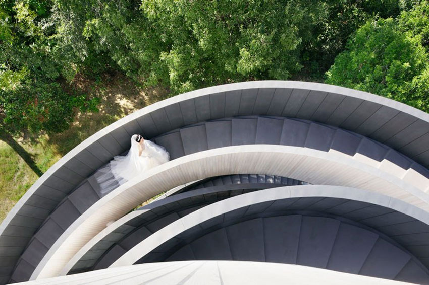 „В този параклис церемонията предвижда булката и младоженецът да се изкачат по стълби, за да се срещнат на върха, да помолят небесата за прошка, за да се слеят в едно и да обявят брака си. Двамата младоженци вървят по отделни пътеки, за да се съединят като един на върха и слизат по стълбите заедно. Това е по същество архитектура, създадена изцяло заради потока на движение.