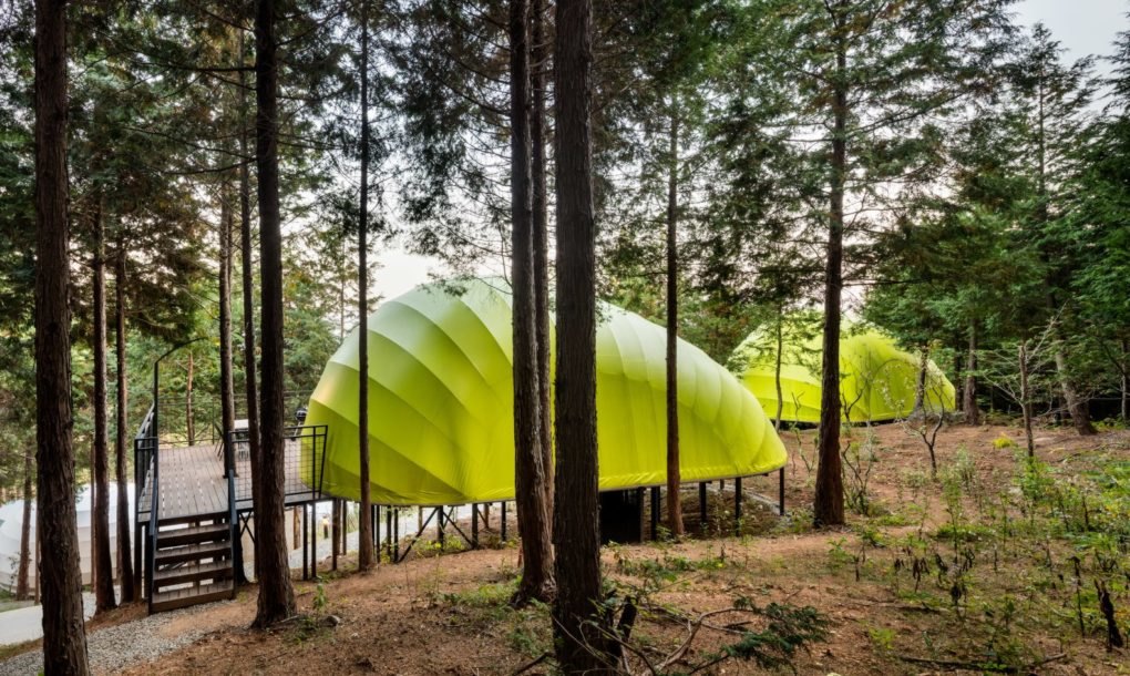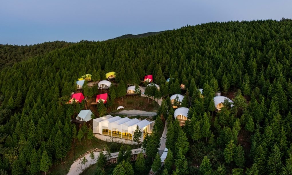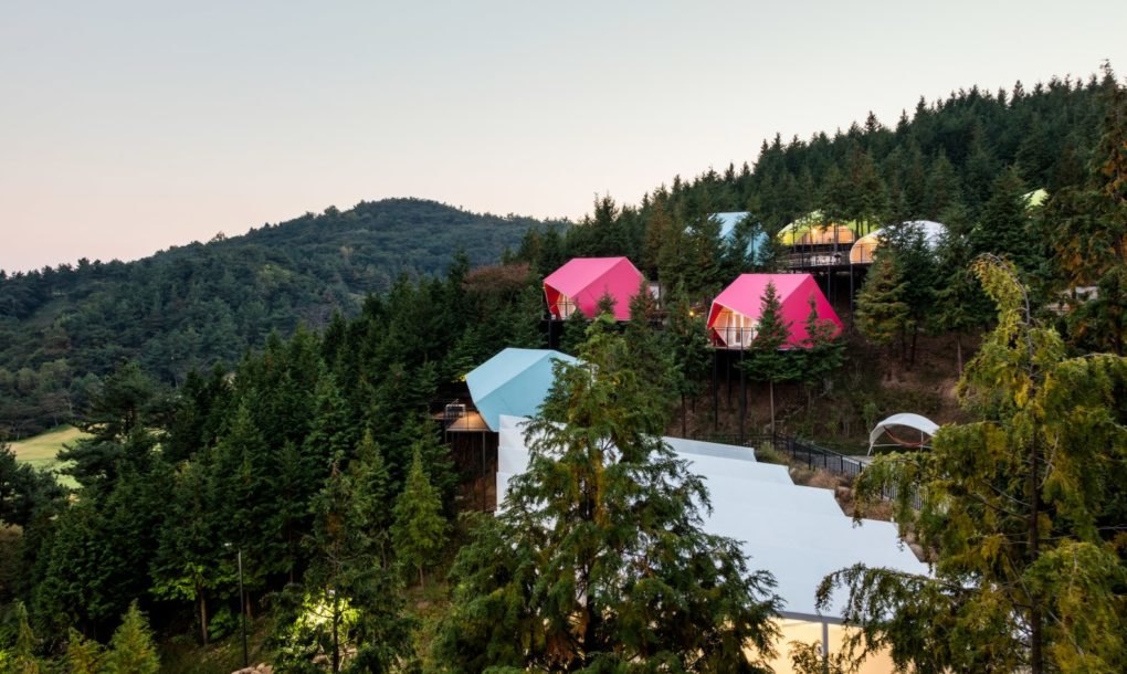 Южнокорейската фирма Atelier Chang е инсталирала група от цветни луксозни къщички в отдалечена южнокорейска планинска верига. Сгушени дълбоко в зелената кипарисова гора, те са предназначени за туристи, които искат да се наслаждават на природата на красива крайбрежна зона на 300 километра южно от Сеул.