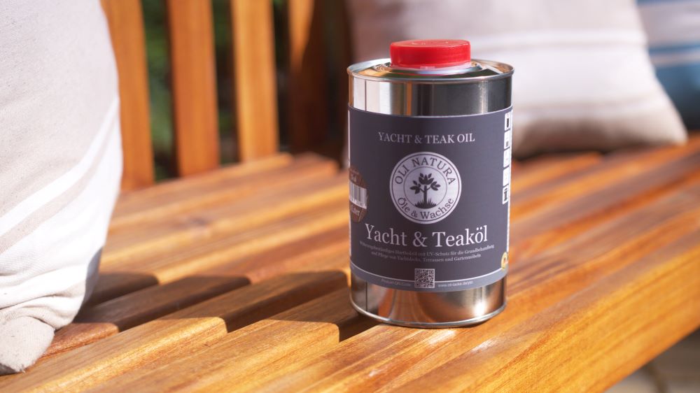 Маслото за твърда дървесина Oli-Natura Yacht & Teak Oil във вариантите „Natur“ и „Teak“ предпазва дървесината от слънцето, дъжда и посивяването на времето. Въоръжено с UV защита, то осигурява на градински мебели, тераси, парапети и яхтени палуби от твърда и екзотична дървесина, устойчива на атмосферни влияния повърхност.